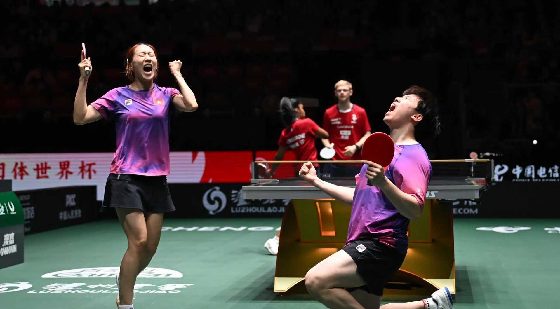 混合ダブルス:林詩棟&蒯曼が0-7からまさかの逆転!第2ゲームをひっくり返し、なんとか逃げ切った。
