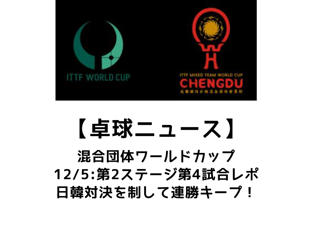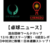 1日目はこちら→【卓球ニュース】ITTF混合団体ワールドカップ2025 第2ステージ第1試合:日本は無敗をキープ!
