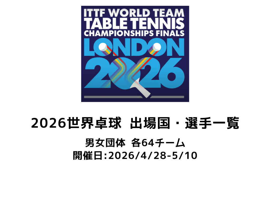 2026/4/28(火)~5/10(日)に『2026世界卓球選手権釜山大会(団体戦)』が開催されます。