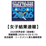 2026/4/28(火)~5/10(日)に『2026世界卓球選手権釜山大会(団体戦)』が開催されます。