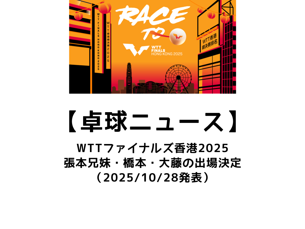 『WTTチャンピオンズ・モンペリエ2025』『WTTチャンピオンズ・フランクフルト2025』という2連戦を経て、年末の『WTTファイナルズ香港』へ向けた最終選考が進みます。