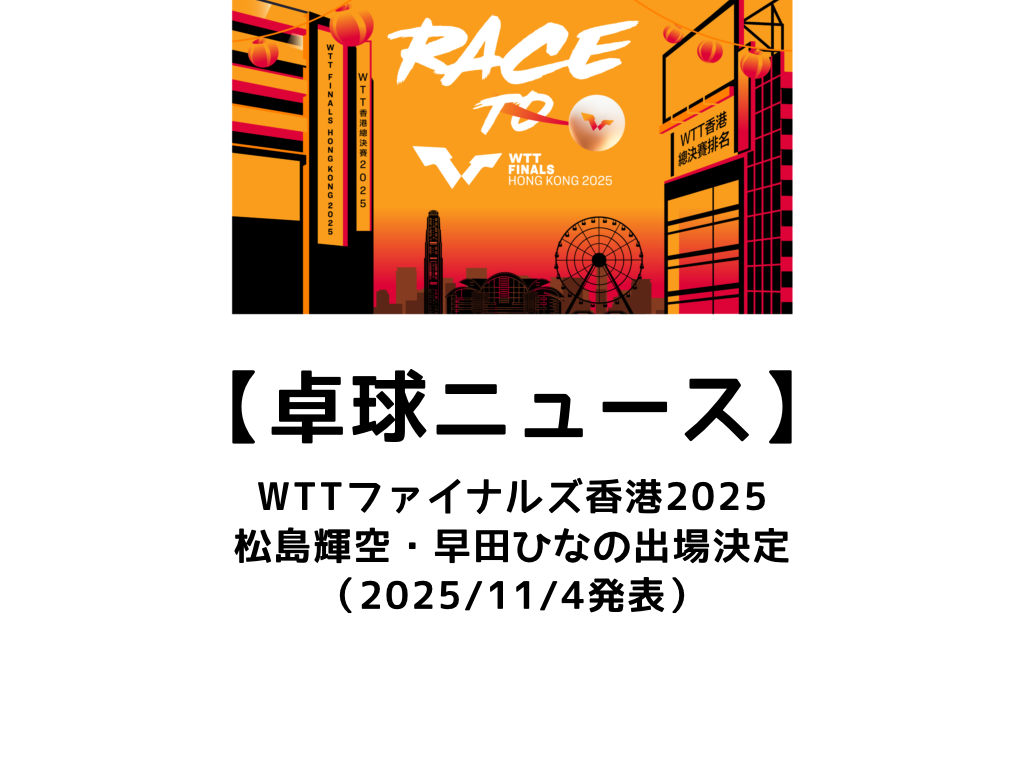 2025年のWTTファイナルズ香港まで、ついにあと1か月余り。