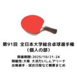 2025/10/17(金)~10/19(日)の日程で『2025年全日本卓球選手権大会(団体の部)』が青森で開催されます。