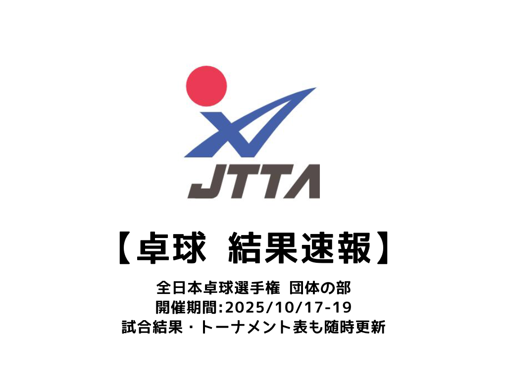 卓球 2025年全日本卓球選手権大会 団体の部 概要:2025/10/17(金)開幕!出場チーム・試合日程・放映情報まとめ