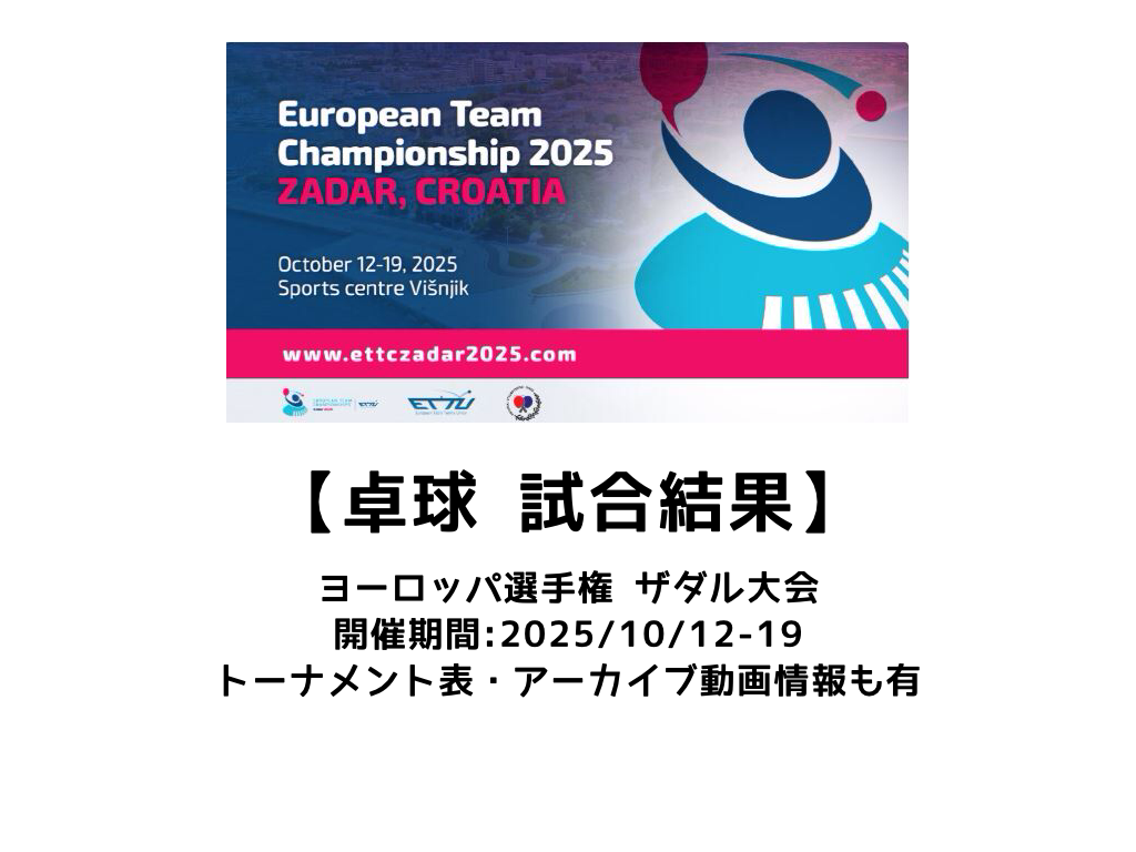 卓球 ヨーロッパ卓球選手権2025 ザダル大会(団体戦)結果速報:試合予定・トーナメント表・アーカイブ動画情報あり