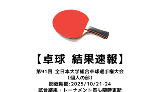 第91回全日本大学総合卓球選手権大会(個人の部)の放映情報は分かり次第更新します