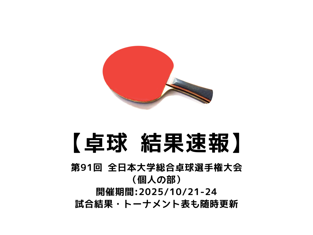2025/10/21(火)~10/24(金)の日程で『第91回全日本大学総合卓球選手権大会 個人の部』がスタート!