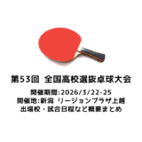 2026/3/22(日)~25(水)の日程で『第53回全国高校選抜卓球大会』が開催されます。