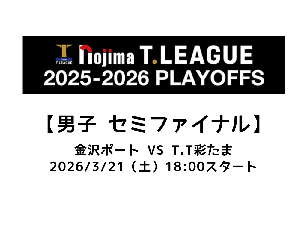 正式名称:ノジマTリーグ 2025-2026シーズン プレーオフ 東亞合成 Presents 男子セミファイナル 金沢ポート vs T.T彩たま
