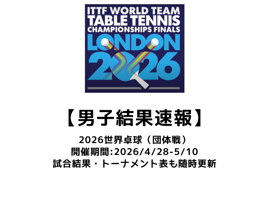 2026/4/28(火)~5/10(日)の日程で『2026年世界卓球選手権ロンドン大会(団体戦)』が開催されます。