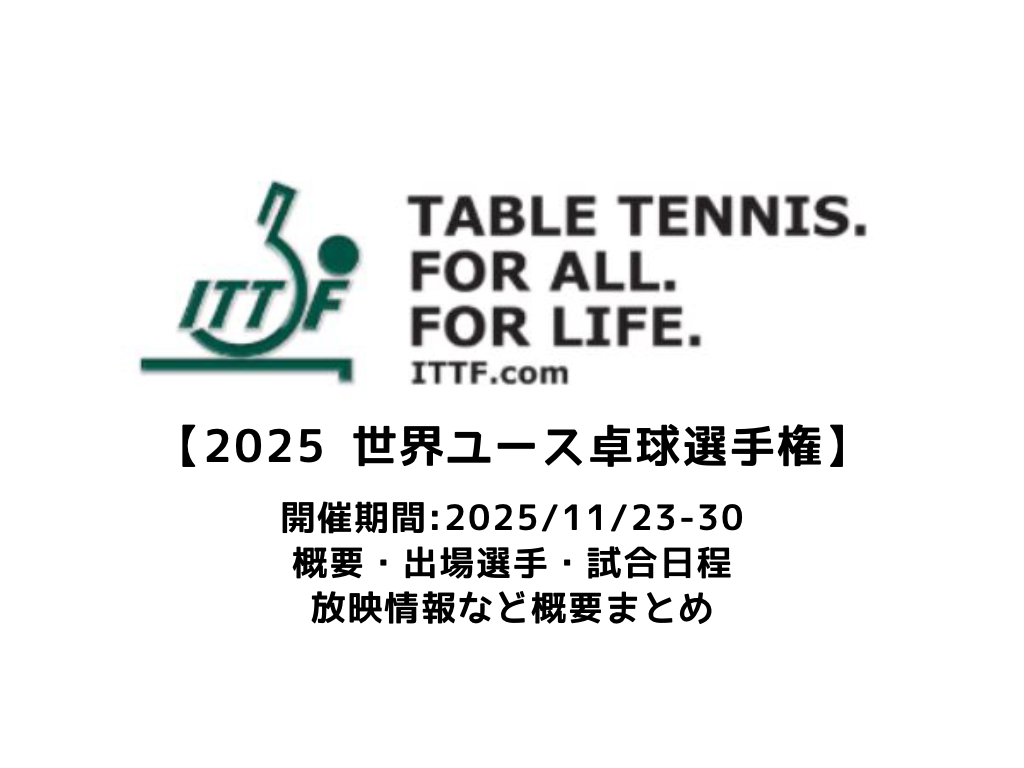 2025 ITTF世界ユース卓球選手権 U19結果速報:試合予定・トーナメント表・アーカイブ動画情報あり 2025 ITTF世界ユース卓球選手権 U15結果速報:試合予定・トーナメント表・アーカイブ動画情報あり