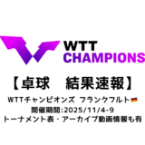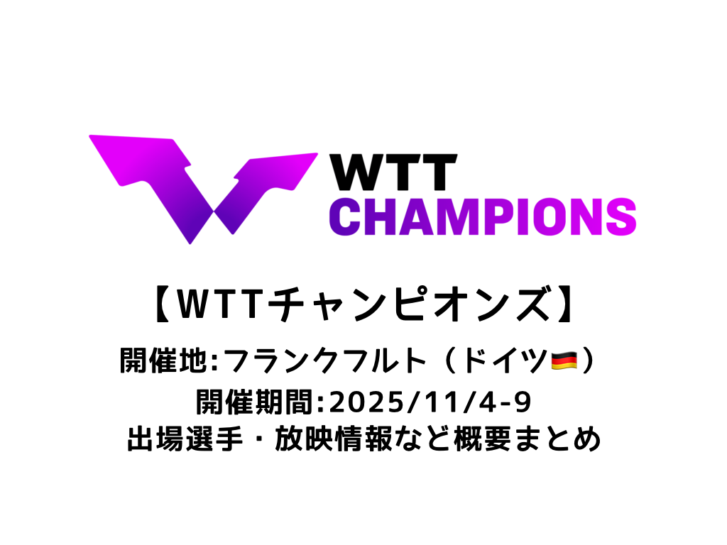 2025/11/4(火)~11/9(日)の日程で『卓球 WTTチャンピオンズ フランクフルト 2025』がドイツのフランクフルトでスタートします。