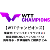 2025/10/28(火)~11/2(日)の日程で『卓球 WTTチャンピオンズ モンペリエ 2025』がフランス・モンペリエで開催されます。