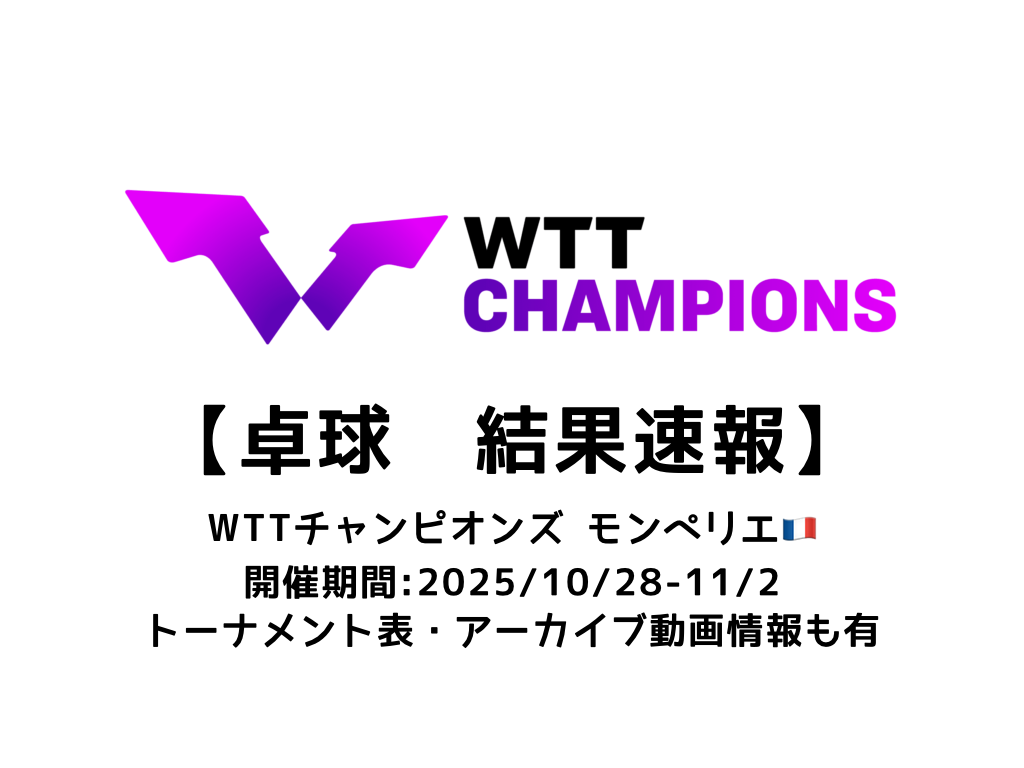 2025/10/28(火)~11/2(日)の日程で『卓球 WTTチャンピオンズ モンペリエ 2025』がフランス・モンペリエで開催されます。