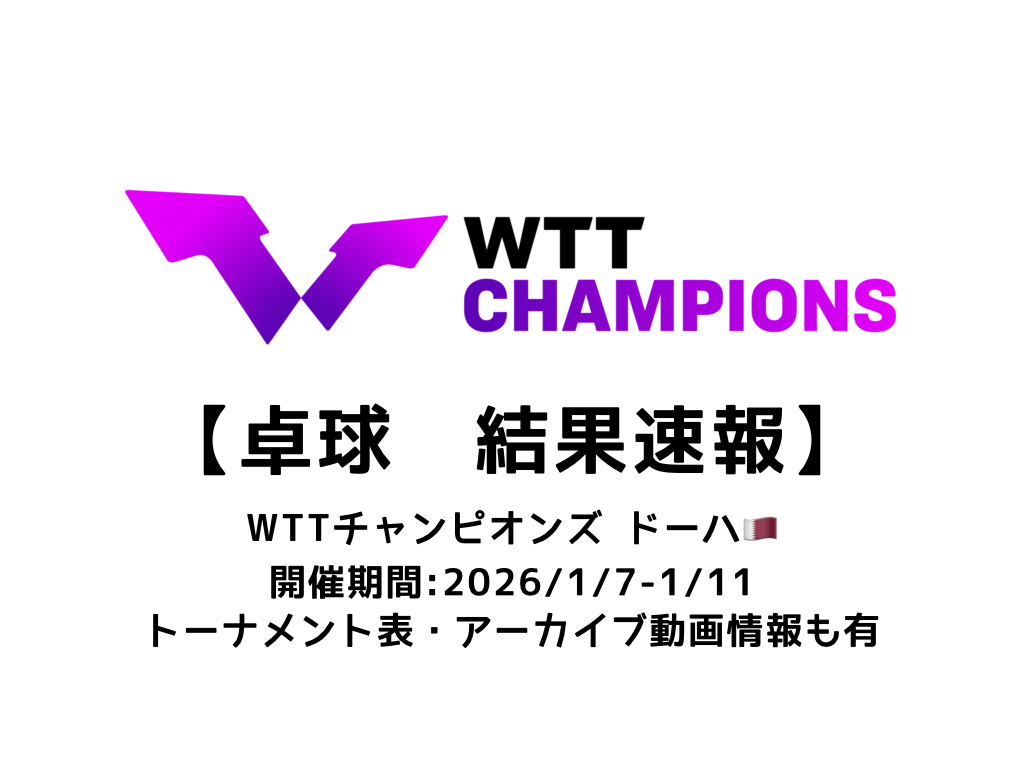 卓球 WTTチャンピオンズ ドーハ 2026 結果速報:試合予定・トーナメント表・アーカイブ動画情報あり
