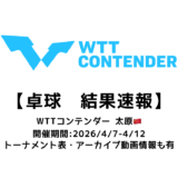 WTTコンテンダー 太原 2026の放映情報は分かり次第更新します