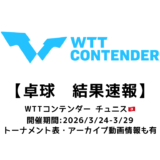 WTTコンテンダーとはWTT (World Table Tennis)が開催する大会で、旧シリーズのITTFワールドツアーでの「レギュラー大会」に該当する大会です。