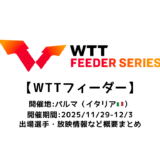 2025/11/29(土)~12/3(水)の日程で『卓球 WTTフィーダー パルマ 2025』がイタリアで開催されます。