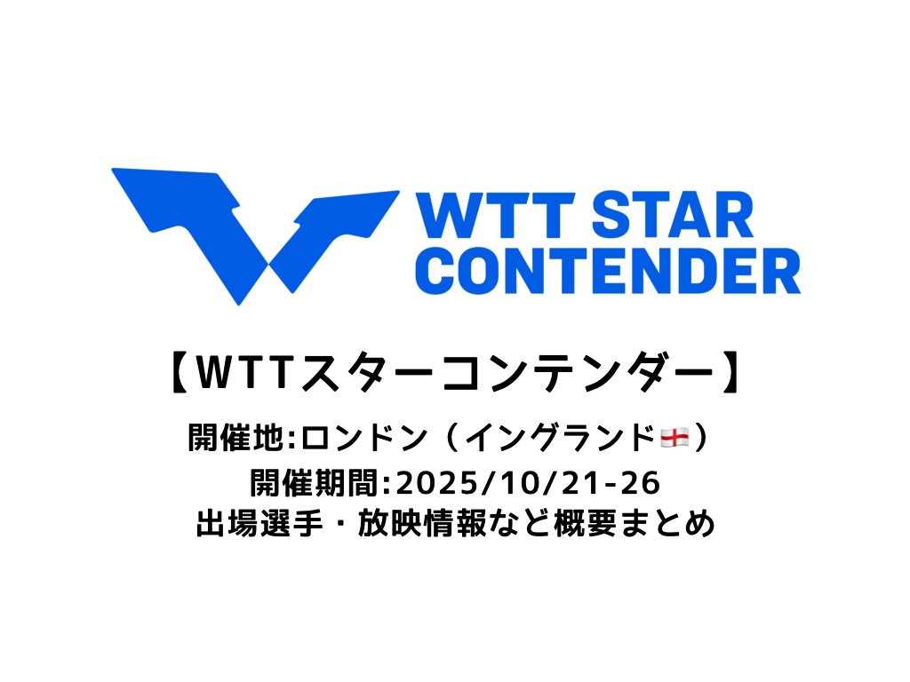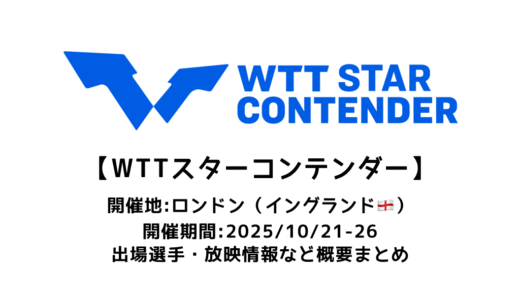 2025/10/21(火)~10/26(日)の日程で『卓球 WTTスターコンテンダー ロンドン 2025』がイングランドのロンドンでスタートします。