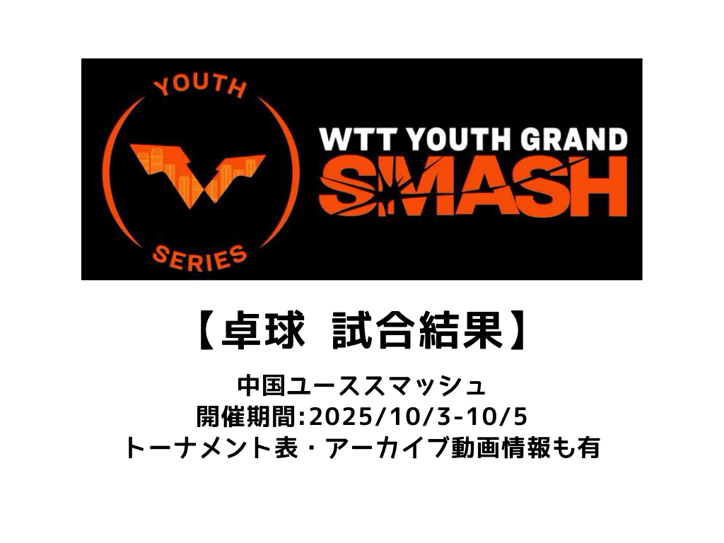 2025/10/3(金)~10/5(日)の日程で『卓球 中国 ユーススマッシュ 2025』がスタート!