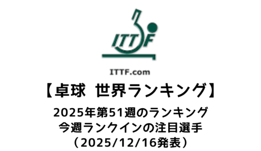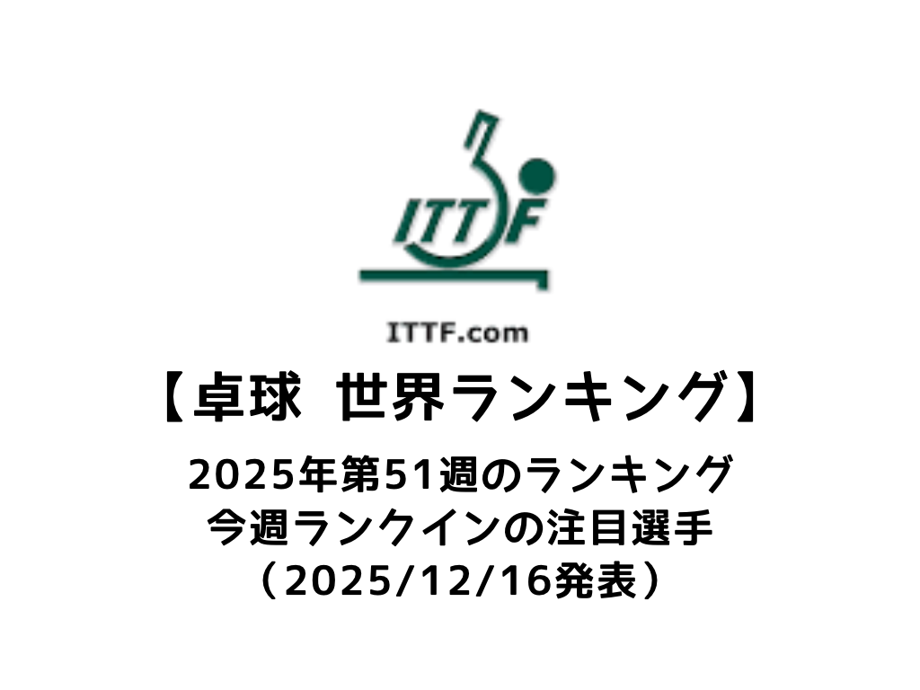 2025年の『WTTファイナルズ香港』での大熱戦を経て、最新の世界ランキング(第51週)が発表されました。今回は、ランキング上位10人の中で特に注目すべき変動を紹介します。