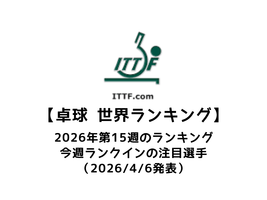 ITTF世界ランキングの第15週が発表され、トップ10周辺で動きがありました。