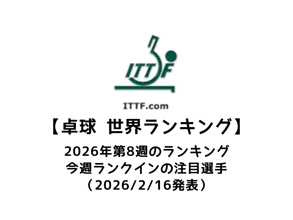 『WTTスターコンテンダー チェンナイ』を経て発表された「Week8」の世界ランキングでは、タイトル獲得や躍進を見せた選手たちが大幅ジャンプ。